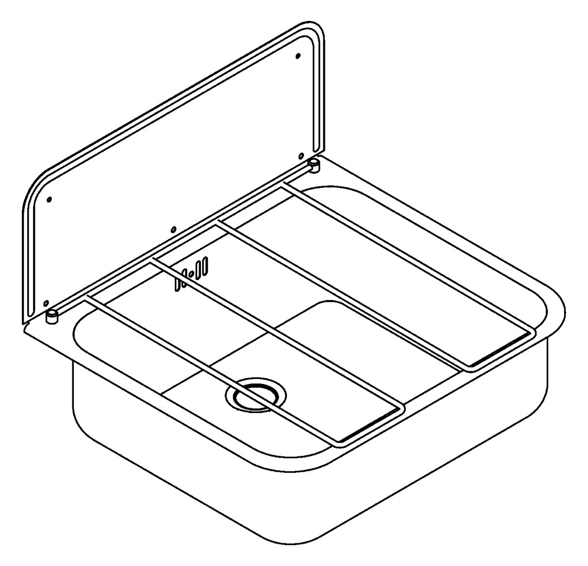 Inkl. Klapprost, Spritzwand und Stopfen. Ablauf hinten mittig, inkl. Ab- und Überlaufgarnitur DN 40.